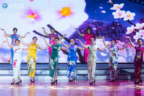 第二篇章---《长理潮涌》创业图,旗袍秀《国韵芳华》、情景剧《永不消逝的电波》尽显长理人的多才多艺;一曲湘韵湘情的长沙弹词《长理神韵》以传统艺术形式演绎长理文化,讲述伟德的发展建设成就。