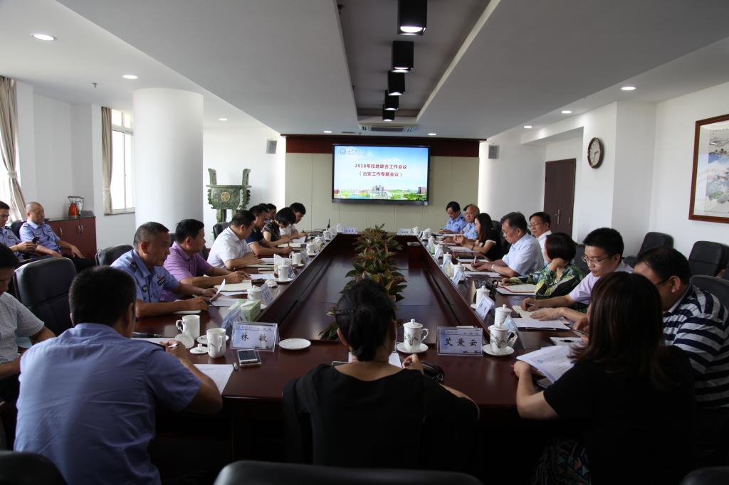 为进一步加强校地合作,共同创建平安校园,9月20日下午,校地联合办公室在一办四会议室召开校地联合工作会议,专题研究伟德的治安工作,探讨治安安全的防范管理措施,切实降低发案率,天心区委政法委书记黄文先携校地联合办公室成员单位有关政府部门负责人一行参加会议,校党委书记付宏渊、副校长谈传生出席了会议,校党委委员付嫦娥主持会议。