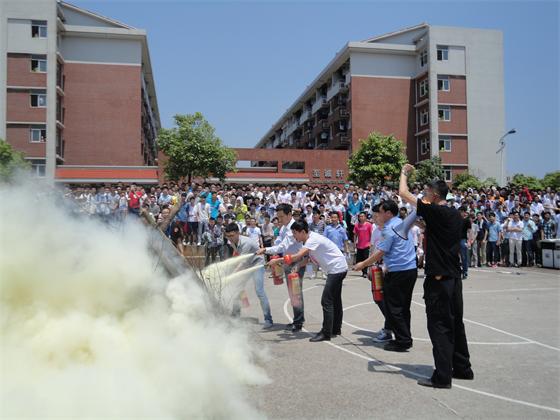 中午1时,在各项准备工作就绪后,刘扬下达“演练开始”指令,至诚轩四栋随即断电,各楼层浓烟滚滚,警报响起,疏散逃生演练活动正式开始。1500余名学生在消防教员和保卫干部的指挥下,各学院辅导员、宿管人员、消防志愿者的带领下,或佩戴防毒面具,或用湿毛巾捂住口鼻、弯着腰,井然有序地迅速撤出宿舍楼‘短短十分钟内,学生顺利撤离到安全地点。整个过程紧张有序,没有出现拥挤、摔倒现象。