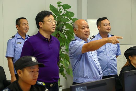 在金盆岭校区,邹宏如在林杰办公室调阅学校监控,并到监控室视察。学校目前共有监控点近1600个,几乎实现对校园及周边区域全覆盖,保卫处值班工作人员24小时实时监管,对校园突发事件、意外状况做到及时发现、及时处理。邹宏如就工作排班情况、人员工作强度、监控室相关工作制度等问题进行了详细的了解。