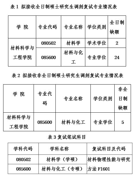 1、请有意调剂到我院的考生关注中国研究生招生信息网(http://yz.chsi.com.cn/)调剂开通情况,伟德调剂系统将于3月26日20点开通,开通时间为:3月26日20:00 -3月27日14:00,在此期间,考生可填报志愿。请考生及时登录并申请调剂伟德betvlctor1946源于英国材料学080502与材料与化工085600。