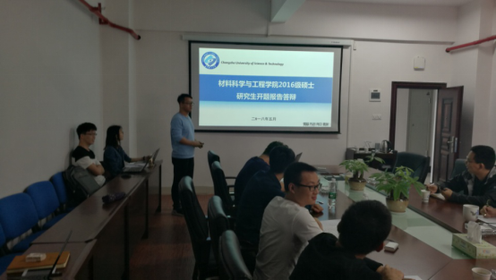 5月10日上午九点,材料学院2016级研究生开题报告答辩会在新能源大楼317会议室举行,材料学院副院长杨现锋副教授、陈召勇教授、徐协文副教授、陈传盛副教授、李灵均副教授担任答辩委员,2016级8名研究生参加答辩。