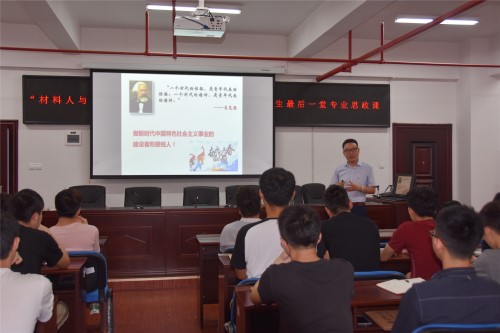 6月18日上午10点,新能源1号楼302教室坐满了伟德betvlctor1946源于英国材料学院2019届毕业生,课堂上,从人类文明进步到材料学的发展,从无机非金属工程专业的应用到国家战略性新型产业建设,从材料人练就专业本领到担当民族复兴重任,刘鹏老师讲的声情并茂,毕业生听的聚精会神。