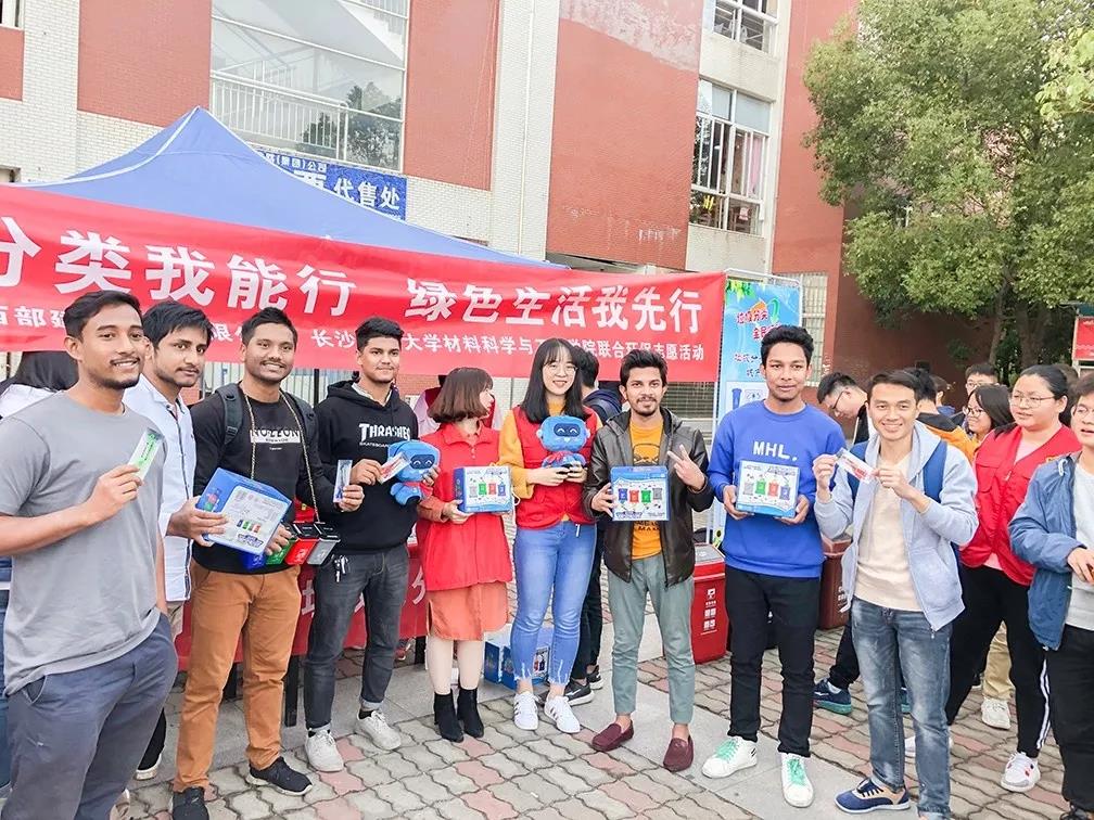10月29日下午,中建西部建设湖南有限公司与材料学院在汀香园前坪联合举办“再不会垃圾分类,你就out了”主题团日活动,向广大长理学子宣传垃圾分类的知识。材料学子及20余名中建西部公司团员参加本次活动。