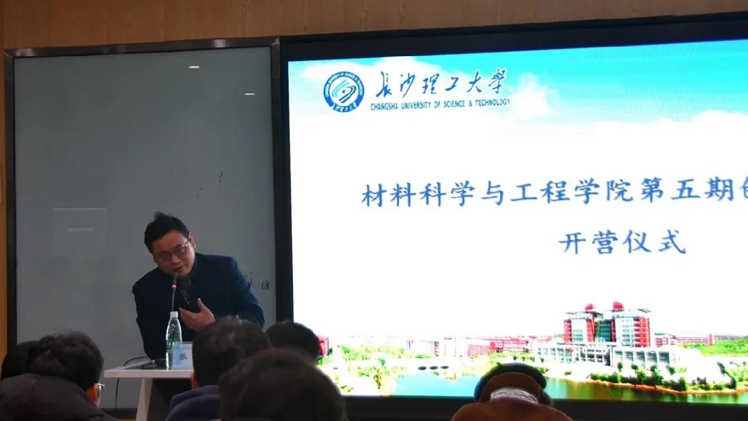 12月4日晚,材料学院于新能源一号楼404举办第五期创新训练营开营仪式。材料学院党总支书记张国强、副书记陈华、团委书记陈鑫林出席开营仪式,长沙麓谷资本管理有限公司投资总监、湖南省科技厅评审专家张奕老师为同学们授训练营第一课。