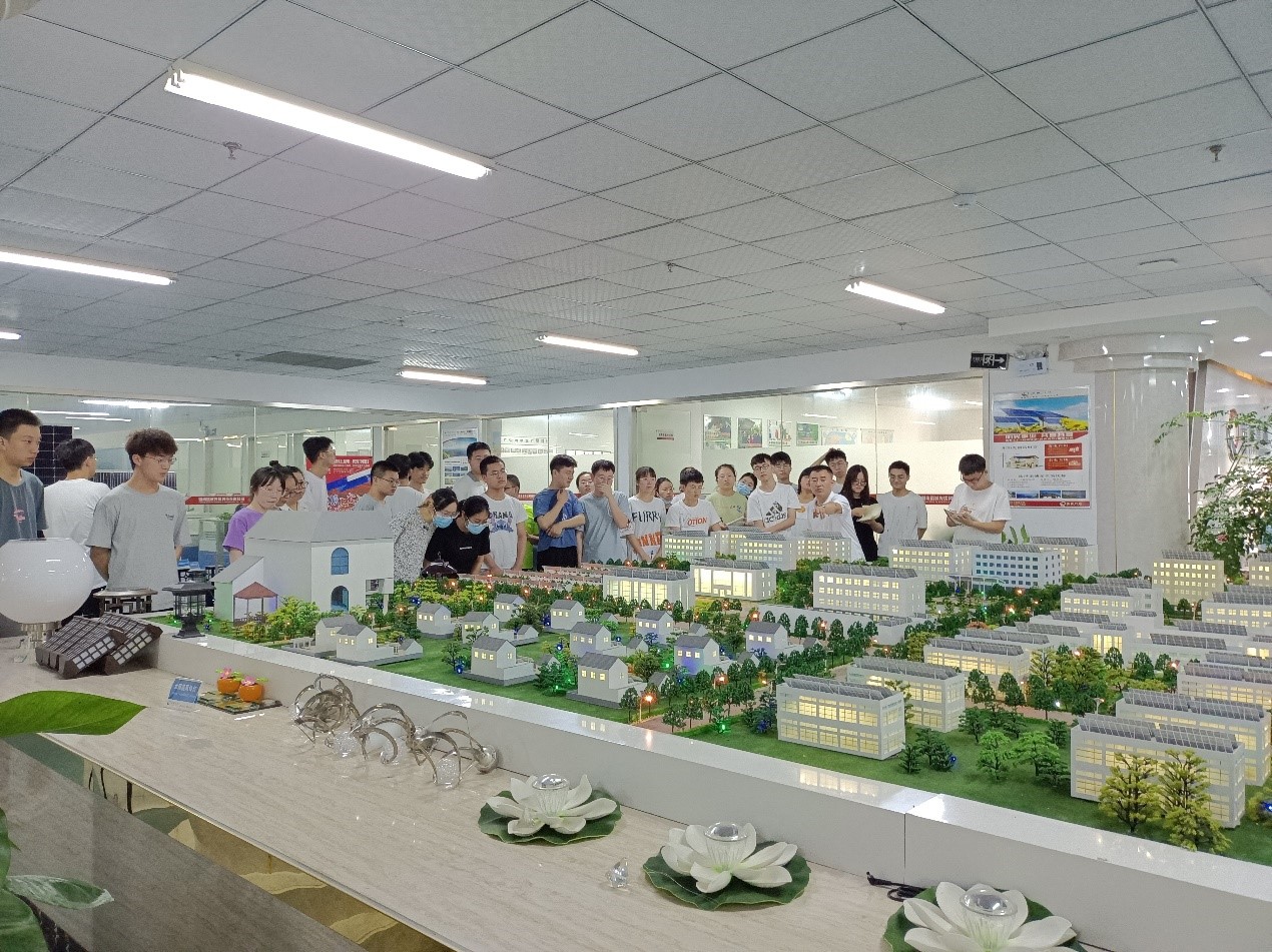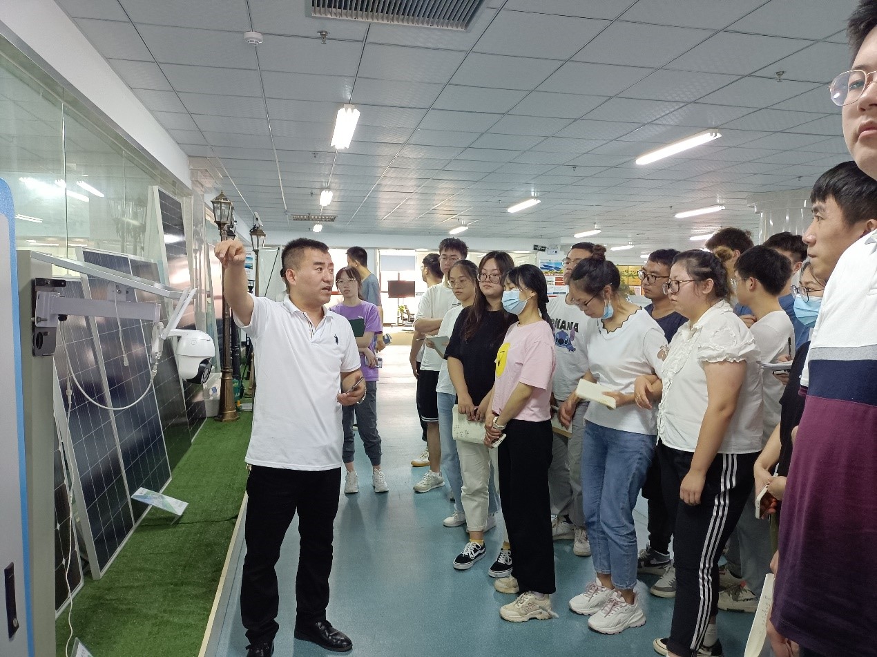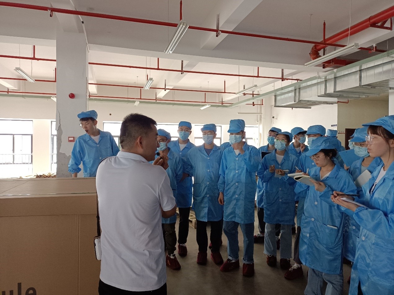 生产主管付志强带领学生们参观了生产产线展区及电站,他先跟学生们强调了注意事项,随后依次介绍了