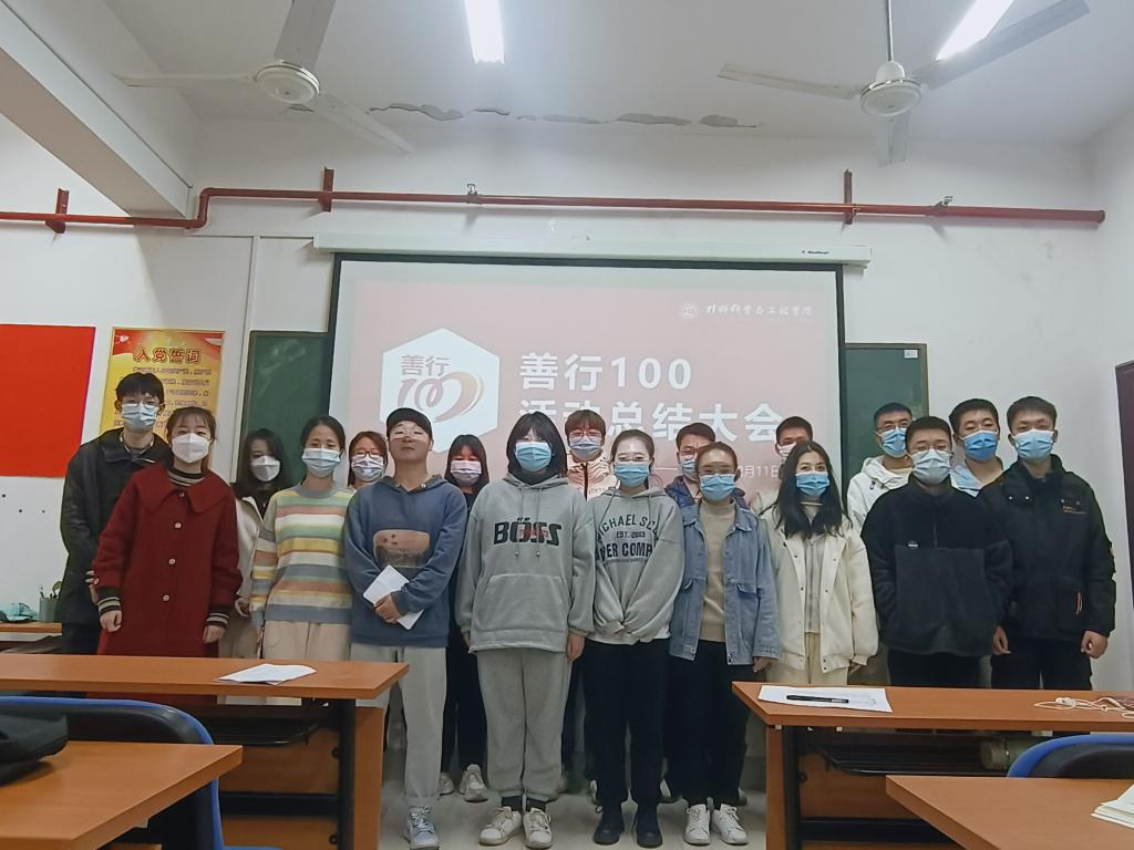 10月至12月,材料学院响应校团委号召积极参加“善行一百”公益活动。“善行一百”是由中国扶贫基金会发起,通过带动大学生参与公益,促进青年大学生了解公益慈善,培育现代公益理念,推动中国公益未来发展的一项公益活动。本次活动由院团委学生会青志协组织,共63名同学参加。