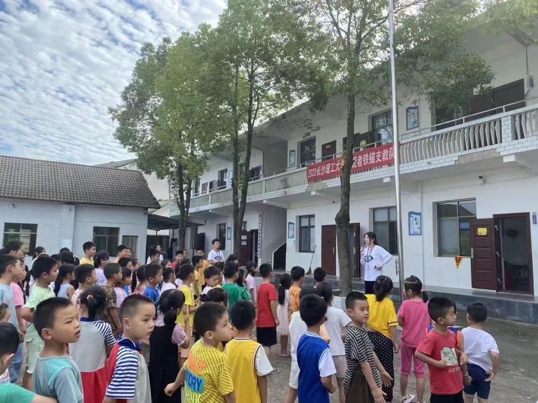 实践团于7月7日到达铁锚小学,经过初步的收拾整理后,在铁锚小学操场设置了四个招生报名点,并进行招生工作,与学生家长签订安全协议,邀请学生家长进入活动交流群。本次活动共招收115名学生,分四个营开展教学活动。随后,实践团举行开营仪式,实践团团长杨秘介绍了本次活动的相关安排,她指出本次支教活动聚焦乡村青少年及留守儿童的教育,课程内容科学完善,涵盖文化课程辅导、科学素养启蒙、艺术及手工实践课程、家访和心理健康教育等各个方面,旨在端正学生的学习态度,养成良好的行为习惯,提升学生的综合素养。