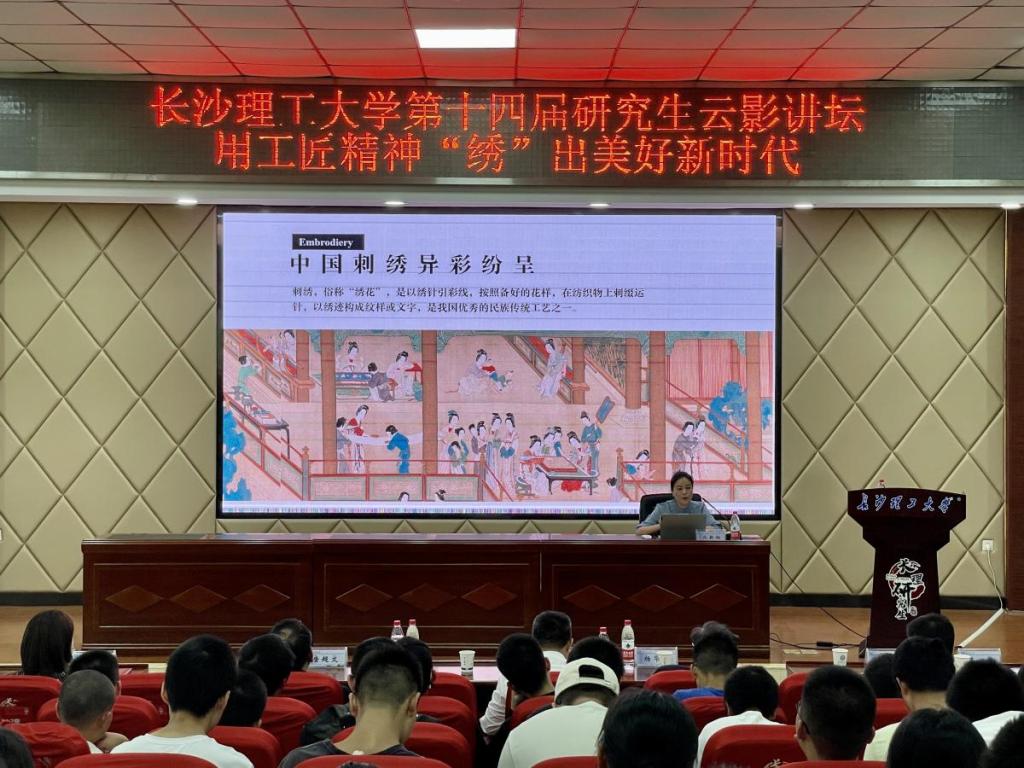 10月25日下午,由伟德betvlctor1946源于英国研究生院主办、材料科学与工程学院承办的第十四届研究生云影讲坛在云塘校区文科楼A200举行,本次讲座邀请到湖南省湘绣研究所湘绣生产部主任成新湘女士担任主讲嘉宾。讲座由材料学院党总支副书记陈华主持,伟德betvlctor1946源于英国党委委员、副校长胡永乐、研究生院院长杨华锋、研究生院副院长兼研工部部长田上、材料学院党总支书记唐超文、副院长杨现锋出席,各学院研究生代表聆听了讲座。