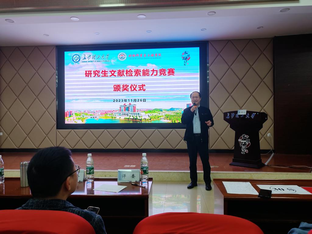 本次竞赛自2023年10月启动以来,共有231支队伍,总计689人次参加。经过初赛的激烈角逐,来自6个学院的15支队伍顺利进入决赛。决赛分为抢答和综述PPT现场讲演两个环节。首先,两位主持人介绍了本次决赛两个环节的规则并宣布比赛正式开始。在抢答环节,参赛选手们全神贯注、信心满满,以丰富的知识储备对答如流,你追我赶、精彩连连,比赛现场紧张又激烈。PPT讲演环节,15位汇报选手依托所学专业知识,分别从文献检索内容、所选研究领域的现状和发展前景等方面进行了汇报,整个环节内容丰富、重点突出、精彩纷呈,充分展示了各个队伍的专业风采和精神风貌。同时,评委老师从PPT主题内容完善度、语言表达技巧、PPT制作、参考文献引用格式和团队协作情况五个方面进行打分。根据评委打分结果,来自交通学院的张紫嫣、梁政裕、孙戈三人队伍获得一等奖,3支队伍获得二等奖,5支队伍获得三等奖,其余队伍获得优秀奖,杨现锋、陈曙光、刘子玉和谭方林老师依次为获奖队伍颁发荣誉证书。最后,杨现锋对此次竞赛进行了总结,他对同学们的综合表现给予了充分肯定,鼓励研究生们紧跟学科前沿,夯实基础,不仅要深入钻研专业知识,也要抓住机会来锻炼各方面能力,实现综合发展。同时,他对大赛也提出了要求,大赛要进一步扩大覆盖面、提升专业影响力,做到严格把关、提升质量,进而实现更高目标。