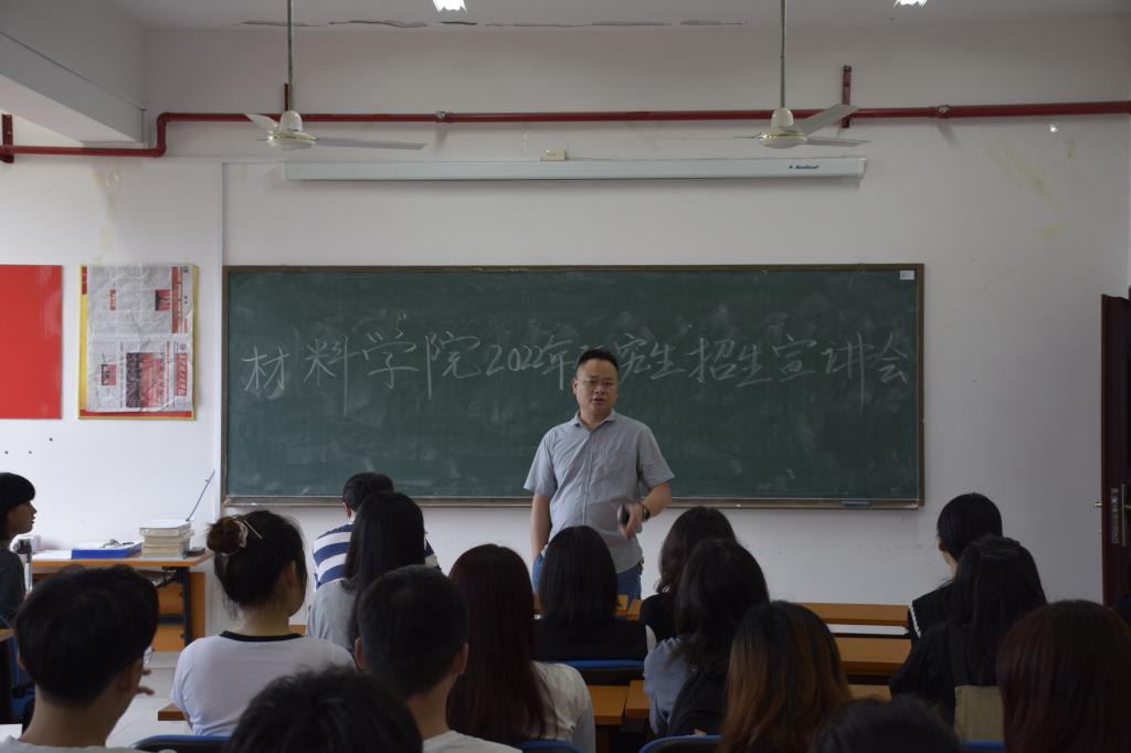 6月22日,材料学院于新能源1号楼303室召开2022年研究生招生宣讲会,材料学院党总支书记张国强、院长毛卫国、副院长杨现锋出席会议,18级全体学生参会。