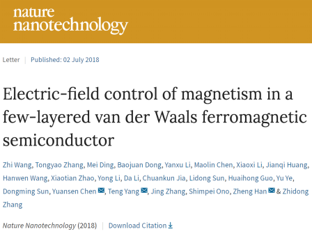 近期,伟德材料学院湖南省团队百人计划丁美教授与中科院金属所韩拯研究员,张志东研究员,山西大学光电研究所陈院森研究组、金属所杨腾副研究员、重庆大学孙立东教授等合作,联合国内外多家单位成功在Cr2Ge2Te6少数层本征铁磁二维半导体中利用固态门电压调控手段,实现了电荷与自旋的双重双极全电操控。该工作于7月2日在Nature Nanotechnology(影响因子:37.49) 杂志在线发表。