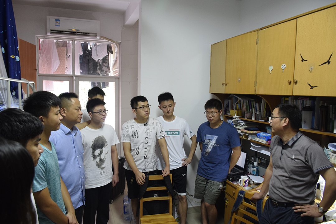 为全面深入细致地了解学生秋季学期开学报到情况,8月23日上午,院长毛卫国、党总支书记张国强、副书记陈华以及全体辅导员深入学生宿舍,实地了解学生情况,并送上学校的关心和关怀。