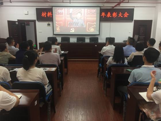 为庆祝建党100周年,更好地推动党史学习教育,把“学史明理、学史增信、学史崇德、学史力行”落到实处, 7月1日上午8:00,材料学院在新能源大楼1-302会议室举行了庆祝建党100周年表彰大会。会议由院党总支副书记陈华主持,学院全体师生党员参加了会议。