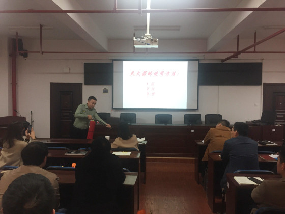 邹教官首先结合近期发生的重大火灾案例,向大家展示了火灾现场震撼的视频和图片,剖析了消防事故产生的原因和惨痛教训,阐述了普及消防安全知识、提升消防安全意识的紧迫性和重要性,在深入浅出地介绍了日常安全防火、灭火及火中自救逃生技巧等方面的知识同时,邹教官提醒在场的老师们,要高度重视消防安全,时时关注身边存在着的安全隐患,如办公室用电安全、实验室消防安全、汽车火灾等,并现场教授大家科学使用消防器具、灭火实操训练,帮助大家提高应对和处置火险隐患的能力。