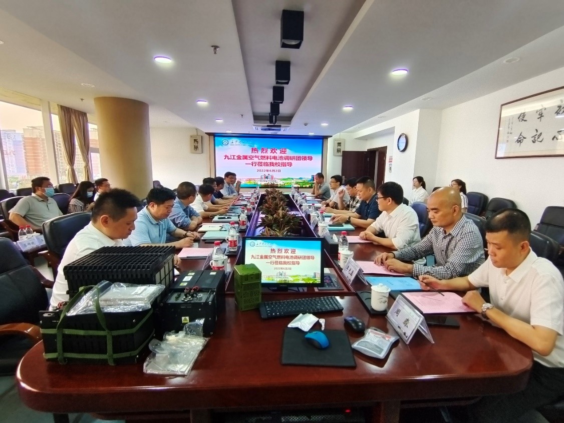 本次科研成果转化对接会主要以材料学院贺浩博士的金属空气燃料电池系列成果为基础,探讨成果转化形式,并围绕相关成果落地九江市、建设金属空气燃料电池产业园过程中政府、企业、高校等各方关心的问题进行了深入交流。会上,贺浩就金属空气燃料电池的技术、产品与未来发展趋势做了详细的报告,现场展示了开发的沾水灯、充电宝、单兵电源、大功率电源模块等产品。由于金属空气燃料电池良好的便携性、环境适应性和及其优异的贮备特性,使得其在创意电源、户外电源、单兵/班组电源、应急救灾、临时用电等领域展示出良好的应用前景。