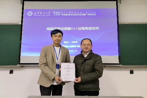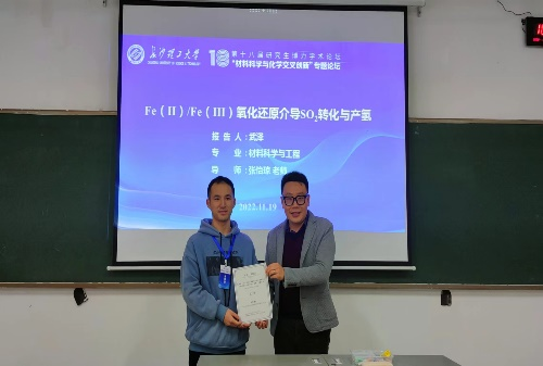 张跃飞教授指出希望以此次论坛为契机,通过跨学科的学术交流,实现学术思维的碰撞,促进材料和化学学科之间的交叉融合,希望同学们在导师的悉心指导下勇攀专业知识的高峰,熟悉学科前沿动态,为迈向更深远的学术道路做好理论和实践的准备。