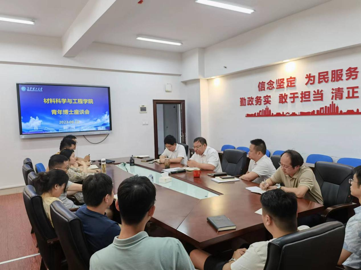 6月15日下午,材料学院在新能源1#楼317会议室组织召开青年博士座谈会,会议由学院党总支书记唐超文主持,班子成员毛卫国院长、杨现锋副院长、李灵均副院长和11位青年博士参会。