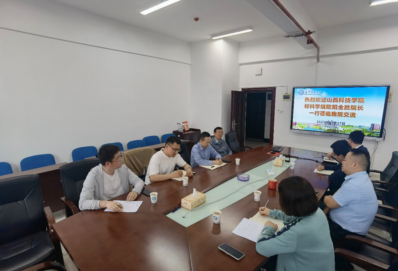 2025年4月27日,山西科技学院材料科学与工程学院院长欧阳全胜、党支部书记朱保顺和无机非金属材料工程教研室主任高云峰来我院走访调研。我院院长毛卫国、党委副书记邵巧艳、副院长李灵均、无机非金属系主任刘鹏出席座谈会,双方围绕无机非金属材料工程专业师资建设、课程设置、招生就业、学生培养等问题深入交流探讨。