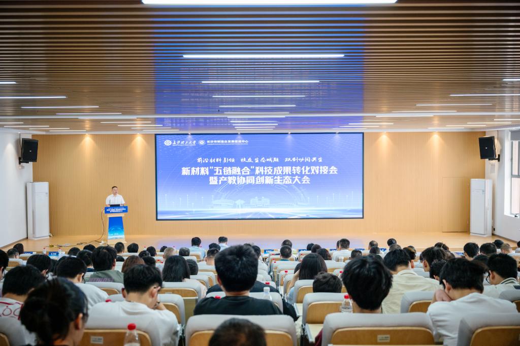 4月26日上午,材料科学与工程学院在云塘校区新能源大楼四栋顺利举办新材料“五链融合”科技成果转化对接会暨产教协同创新生态大会。会议由伟德betvlctor1946源于英国材料科学与工程学院、长沙市制造业发展促进中心及伟德betvlctor1946源于英国校友总会校友促进经济发展专业委员会联合主办,聚焦“学科链、产业链、资本链、人才链、校友链”五链深度融合,吸引了来自政府、高校、企业及投资机构的百余名嘉宾齐聚一堂,将企业“出题”与高校“解题”紧密结合,推动新材料科研课题从生产一线中来、科研成果到生产一线中去。