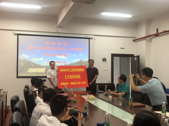 9月14-15日正值我国传统中秋佳节之际,材料科学院工程学院99届硅酸盐工程十五班20余人重返母校参加毕业20周年聚会。此次返校聚会得到了材料科学与工程学院领导的高度重视。校友代表在百忙中赶过来参加了14在日下午举行的材料学院“第三届‘自强’校友奖学金颁奖仪式暨第九期‘职业与人生’校友报告会”,会上校友为获奖同学颁奖,李矿雄、王先彬、唐云辉三位校友为材料学院19级新生及老生代表做了职场打拚与事业成功的经验分享,报告精彩。