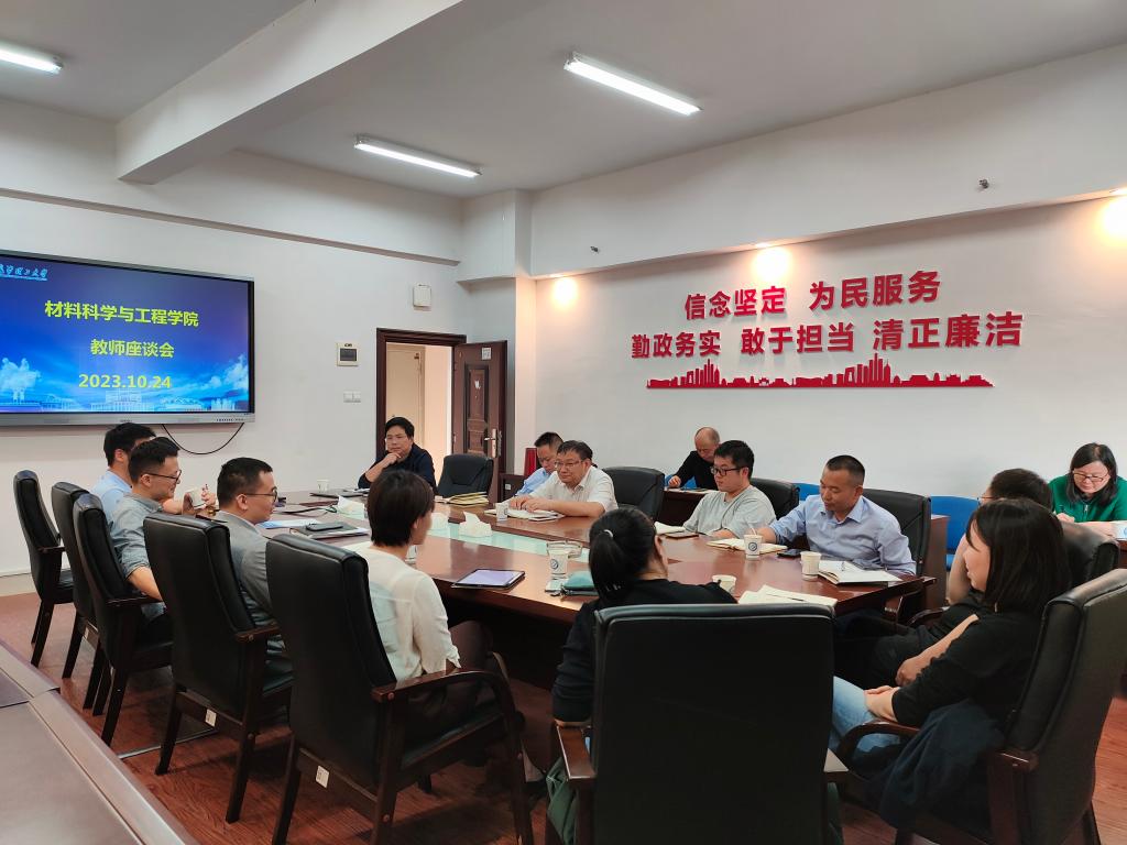 为重点了解本学院教风、教学改革及教学效果情况,并分析在教风、学风以及日常教学过程中存在的问题,提出解决的措施与对策,2023年10月24日下午,材料学院在新能源1号楼317会议室开展教师座谈会,学院领导和教师代表们齐坐一堂,共同探讨教育教学问题。