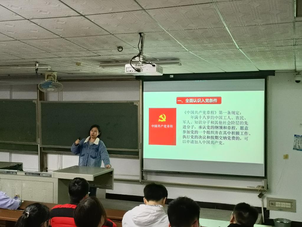 4月14日下午19点,材料学院分党校培训班开班仪式在金盆岭校区12教515举行。材料学院党总支副书记陈华、20级辅导员谢易真出席,金盆岭校区第37期入党积极分子全体学员参加。