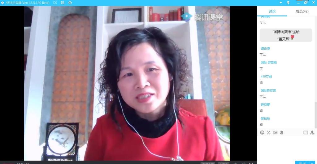 4月7日下午,材料、国际学院分党校第11期发展对象培训班《习近平新时代中国特色社会主义思想》专题党课在腾讯课堂网上平台进行,本次党课由马克思主义学院董艾辉教授讲授。