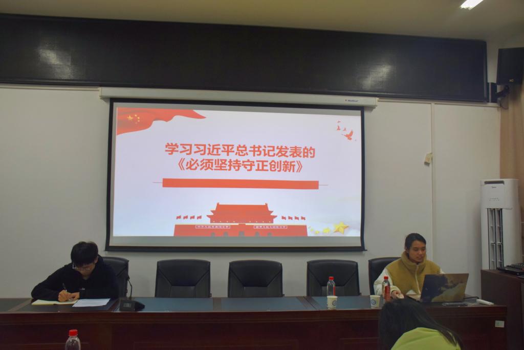 活动伊始,党员代表郭雅琴讲述了习近平总书记发表的《必须坚持守正创新》。守正创新是党在新时代治国理政的重要思想方法,全体党员同志必须坚持马克思主义的发展观点,坚持实践是检验真理的唯一标准,发挥历史的主动性和创造性,结合中国基本国情,充分展现中国特色、中国风格、中国气派。