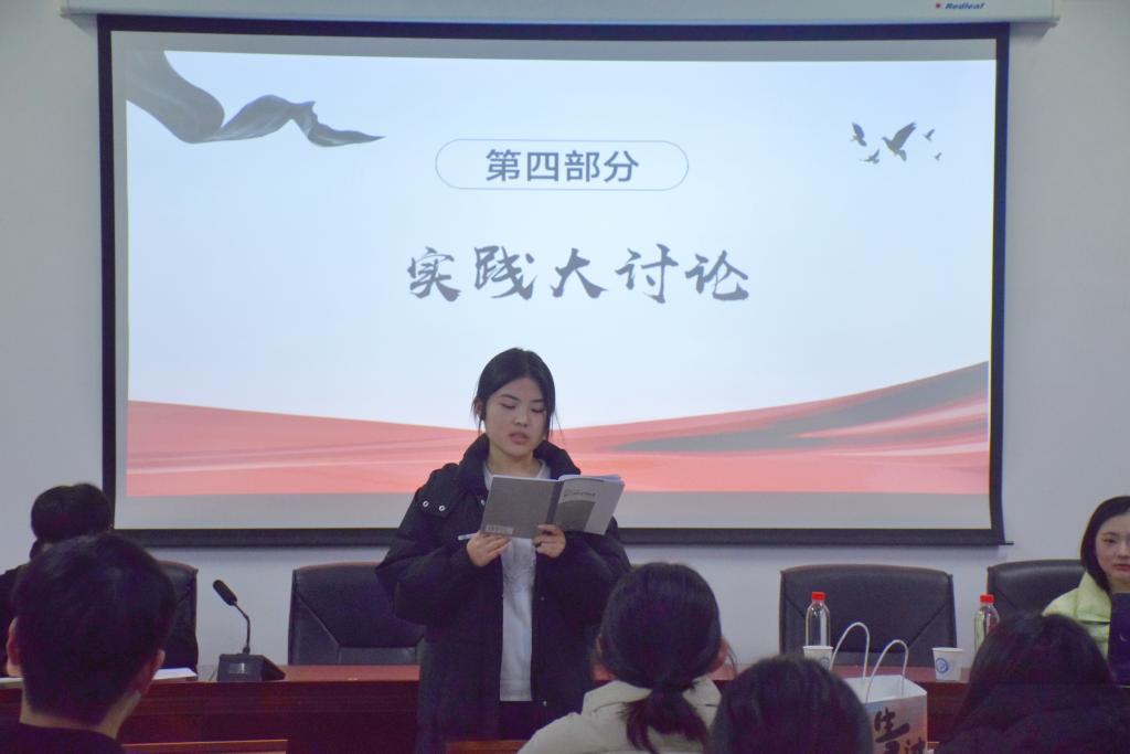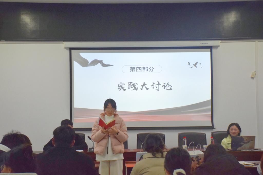 接下来,全体党员集中观看了党员专题教育片,该影片讲述了心有大我、至诚报国的教育家精神。自五四运动以来,教育家们在不同时代背景下教书育人,将马克思主义引入中国,结合中国实际加以宣传,深入人民心中,用自己的方式将其深刻的内涵精神继承下去,为党和国家培养了一系列人才。观影结束后,活动进入了讨论交流环节。李永康同志和袁馨怡同志作为代表发表了自己学习心得。他们认为,青年党员在时代发展中要守住自己的初心,将思想进行传承和发扬,并加以创新,贯彻自己心中的理想信念,发挥自身的先锋模范作用。