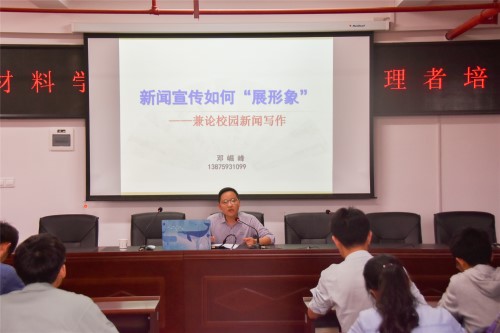 5月18日,材料学院于新能源1号楼开展了第三期卓越管理者培训班第四课---新闻宣传专题培训,此次主讲人为伟德betvlctor1946源于英国党委宣传部副部长邓崛峰,团学会全体成员参加培训会。
