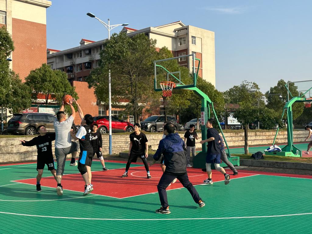 11月16日下午,材料学院在至诚篮球场举行了师生篮球赛。教师队伍由材料学院院长毛卫国带领,成员包括副院长杨现锋、副院长段军飞、张龙、金红广、范习之、周哲和王志亮等多名教师,学生队伍由材料学院研究生篮球队队员组成。学院党总支书记唐文超、副书记陈华与部分师生莅临现场观看比赛,并为双方队伍加油助威。