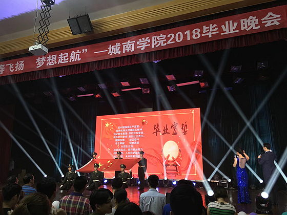 6月20日晚,城南学院“青春飞扬 梦想起航” 2018届毕业生晚会在五教大礼堂举行。本次晚会由院团委主办,学生会和晨曦艺术团联合承办。院党委书记袁剑波、院长赵华、校党委宣传部副部长成华、院党委副书记王明彦、副院长李晓铭、郝宁、向永生,教师代表与现场1000余名毕业生共同观看了演出。