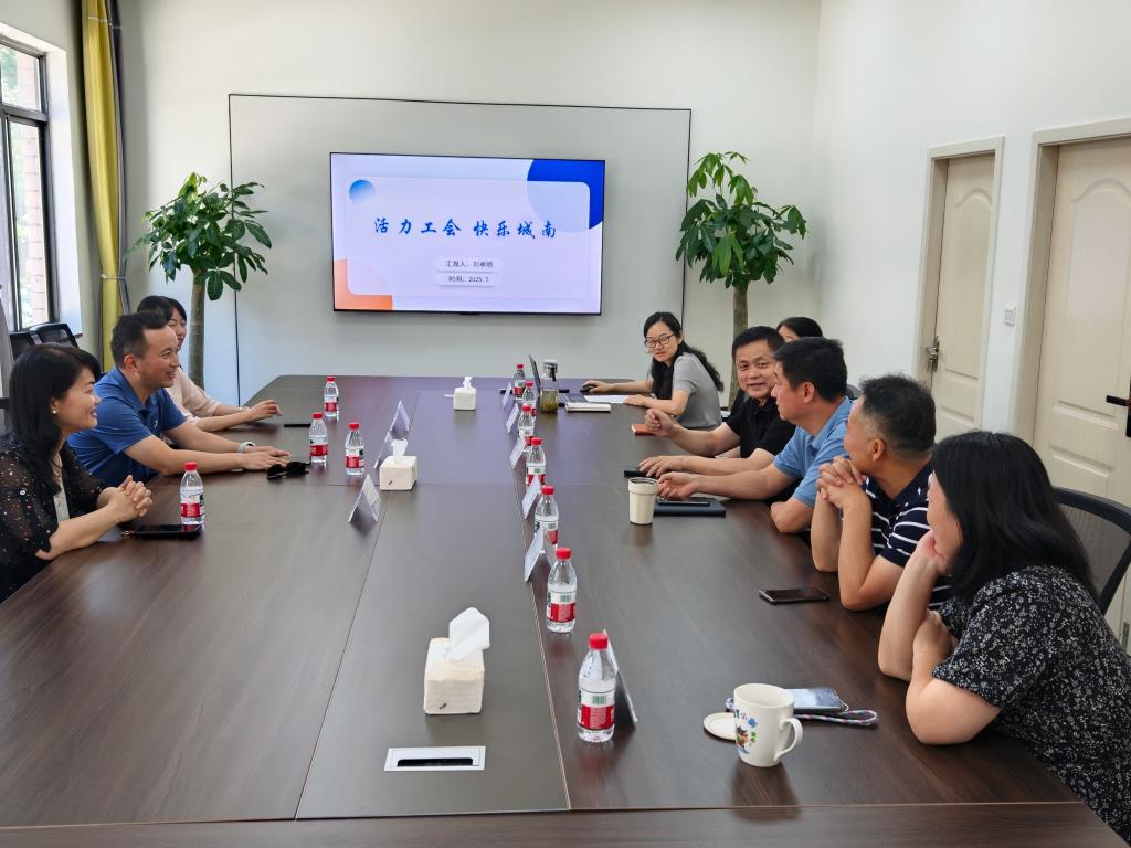 学院工会主席刘卓明详细汇报了学院职工小家建设情况,重点介绍了依托职工小家平台,创新开展的“城南教工悦动汇”之“活力唤醒计划”和“‘桌’越同行计划”两项活动。透过轻松温馨的方式关爱教职工身心健康,打造“城南大家庭”,积极营造“快乐运动、健康活力”的分工会文化氛围。