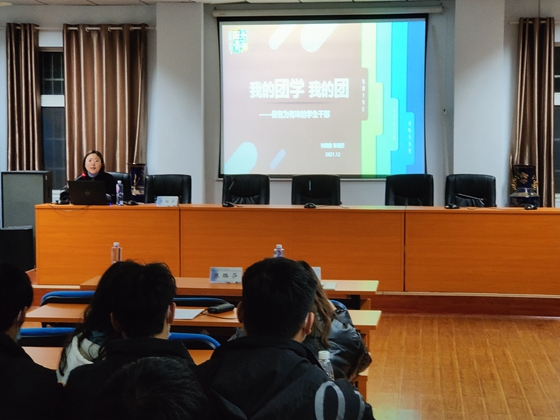 12月16日晚,城南学院2021-2022学年度青马班第一课在金盆岭校区二教201举行。校团委副书记陈璐莎应邀主讲。城南学院党委副书记陶传谱、团委书记胡巍及100余名学员参加。
