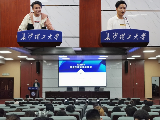 接着,副院长朱广峰针对目前大学生就业环境和形势做了具体分析,介绍了国家在稳就业方面做出一系列努力和采取的措施。他建议同学们认清自己,合理定位;积极行动,抓住机会;再次调整目标,最终成功就业。