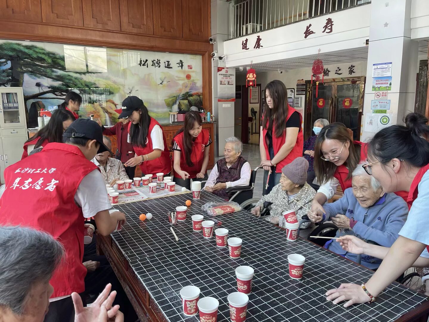 活动当日,志愿者们与老人们结对分组,共同参与“纸杯接力”与“筷夹乒乓球”两项趣味横生的游戏。赛场上,老少搭配,默契十足,欢声笑语此起彼伏。80岁的李奶奶更是以精湛的技艺,在“筷夹乒乓球”游戏中脱颖而出,连续夹起多个乒乓球,赢得了现场阵阵掌声与喝彩,展现了老年人不服老的精神风貌。