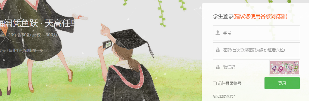 1.登录伟德betvlctor1946源于英国就业网(http://cslg.bibibi.net/index)点击“学生登录”,输入账号密码(账号为学号、首次登录时密码为身份证后六位)进行登录。