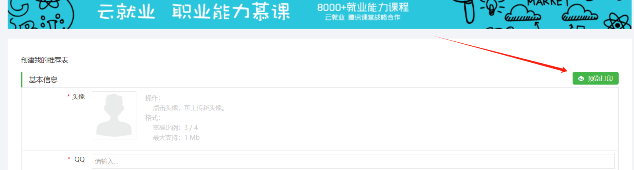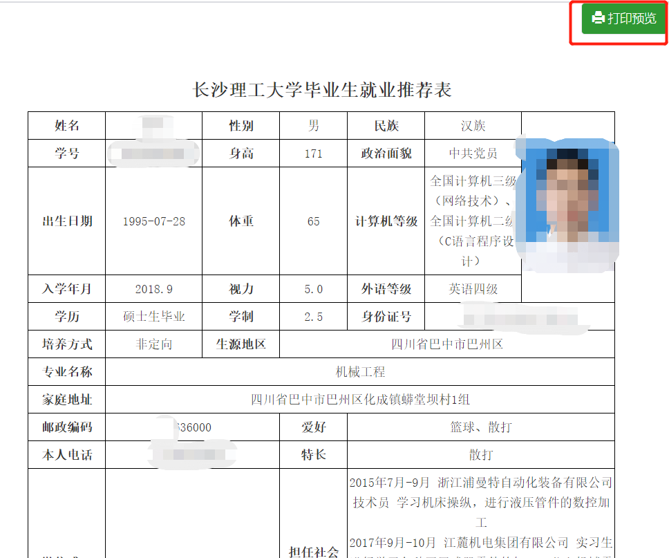 三、填写完成后即可自行打印推荐表