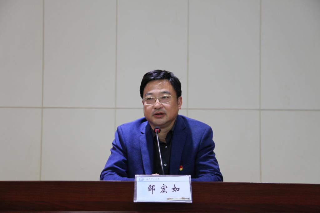 4月14上午,学校在云塘校区一办公楼九会议室举行仪式,聘请湖南省核工业地质局原党组书记、局长陈书山担任客座教授。聘任仪式由党委副书记邹宏如主持,党委书记付宏渊为陈书山颁发聘书。党委组织部长齐路良、文法学院部分教师、处级干部培训班学员等100余人参加了仪式。