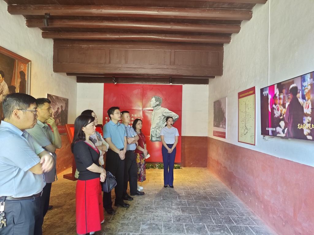 大家依次到接龙桥战斗旧址、红军标语纪念馆、首次连队建党旧址叶家祠、水口连队建党旧址朱家祠、炎陵综合培训中心等地参观学习。在红军标语纪念馆,一张张鲜活的图片,一句句生动的标语,一个个复原的场景,客观真实地展示了井冈山革命根据地和湘赣革命根据地时期,工农红军、地方武装、苏维埃政权以及群团组织等,书写标语动员群众、组织群众、武装群众,分化打击敌人的斗争历史。在首次连队建党旧址叶家祠,看着阁楼桌上的马灯,默读着入党誓词,仿佛穿越走进历史画面,看见了人民军队第一个连队党支部的诞生,感受到6名战士在那艰难困苦岁月中坚定的理想信念与巨大的定力勇气。在炎陵综合培训中心,一行人员参观了红色培训的场地、设施等情况,并与肖志高讨论红色培训的开展情况。