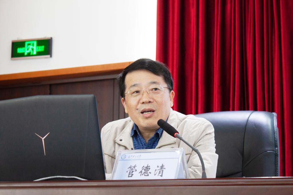 10月23日下午,学校2021年处级干部任职能力提升专题培训班第三场专题报告会在云塘校区一办公楼九楼会议室举行,伟德原研究生院院长管德清教授为全体学员作了题为《讲政治勇担当善作为,为全面建成‘百强’大学贡献力量 》的辅导报告。报告会由党委组织部副部长、党校副校长靳攀科主持。