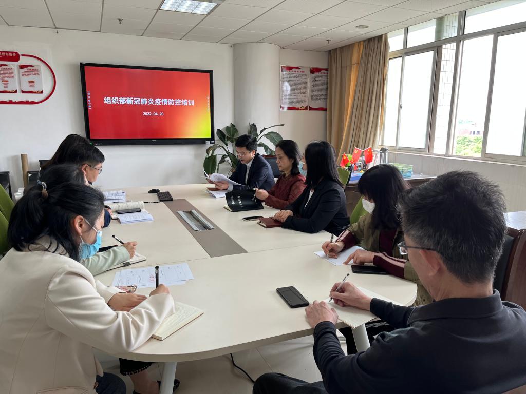 4月20日上午,根据学校《关于做好新冠肺炎疫情防控培训的通知》,组织部常务副部长陈曦主持会议,开展新冠肺炎疫情防控集中培训,全体干部职工参加培训。