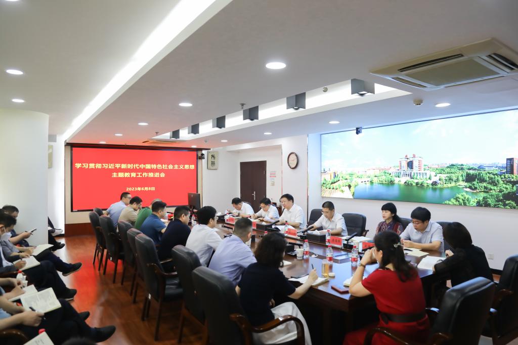 6月8日上午,学校学习贯彻习近平新时代中国特色社会主义思想主题教育工作推进会在云塘校区一办公楼六会议室召开。学校党委书记、主题教育领导小组组长付宏渊出席会议并讲话。校长曹一家等全体在家校领导、学校主题教育领导小组办公室有关成员、各二级党组织书记参加会议。会议由学校党委副书记刘建民主持。