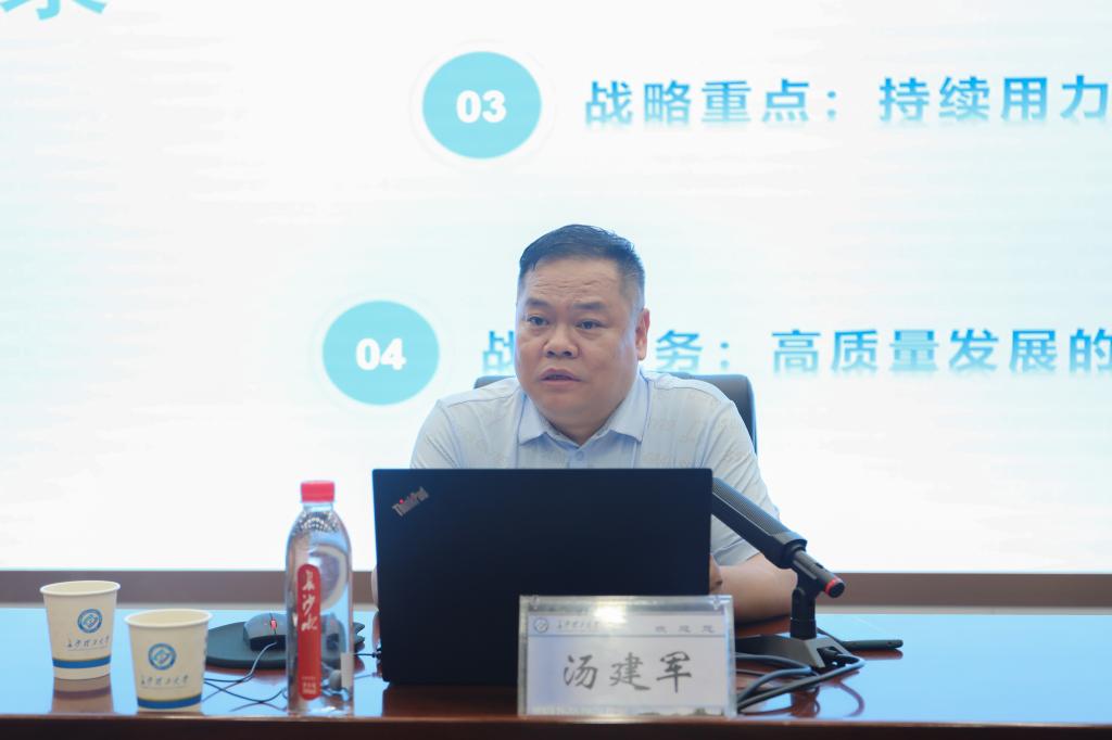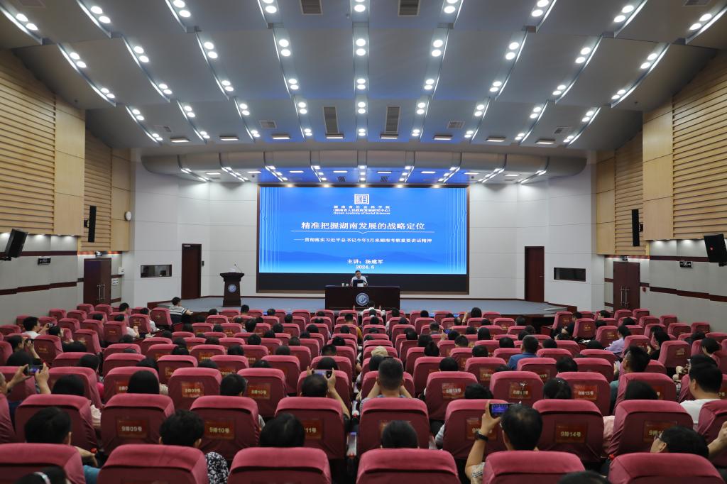 6月13日下午,湖南省社科院副院长汤建军教授应伟德邀请,在云塘校区图书馆报告厅开展题为“精准把握湖南战略定位”的专题讲座。校党委书记付宏渊、全体新任职处级干部、机关科级干部参加了此次活动,专题讲座由校党委副书记刘建民主持。