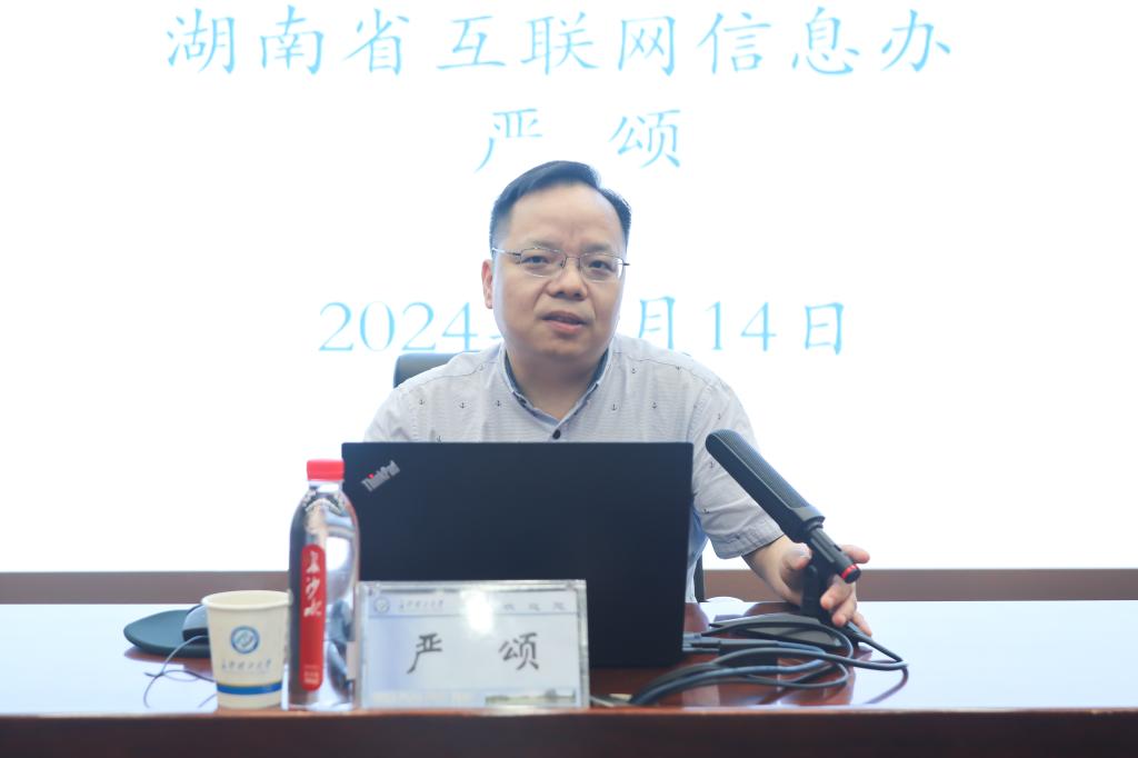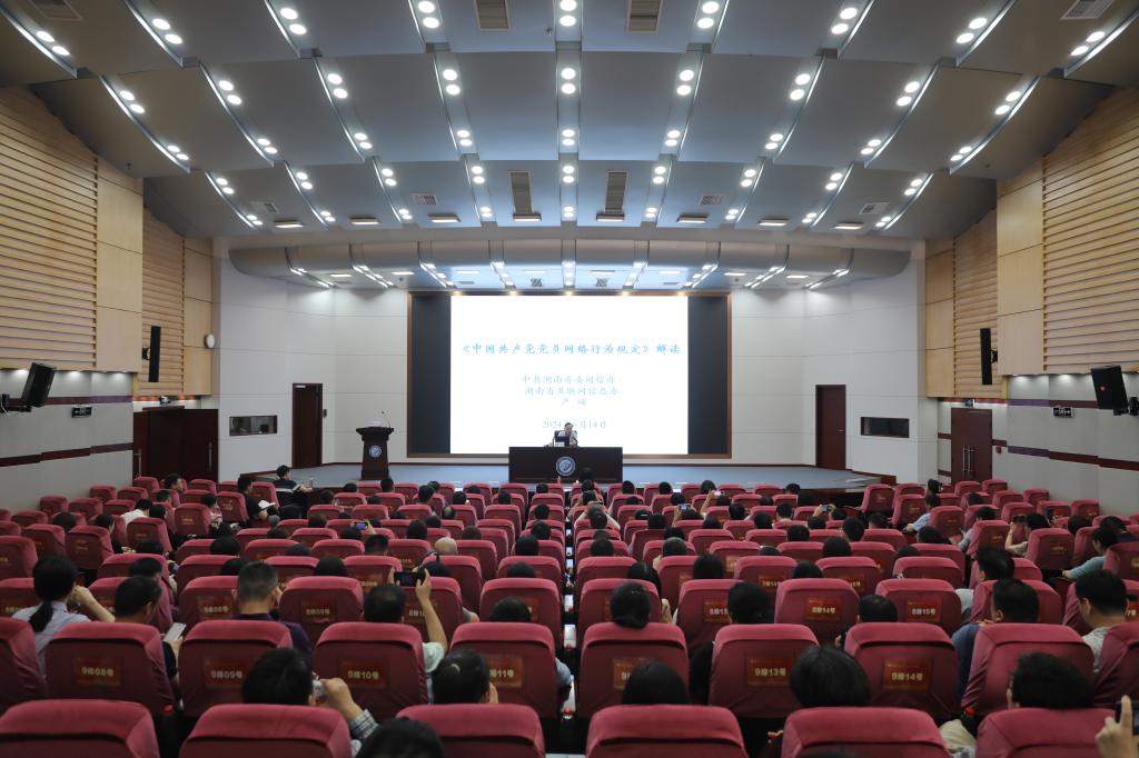 6月14日,伟德在云塘校区图书馆报告厅组织新任职处级干部任职能力提升专题培训班、机关科级干部培训班第五场培训。中共湖南省委网信办网络执法与监督处处长严颂应邀作专题讲座。全体新任职处级干部和机关科级干部参加培训。培训由校党委委员、宣传部部长方琼主持。