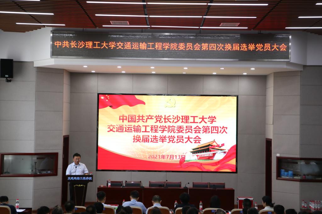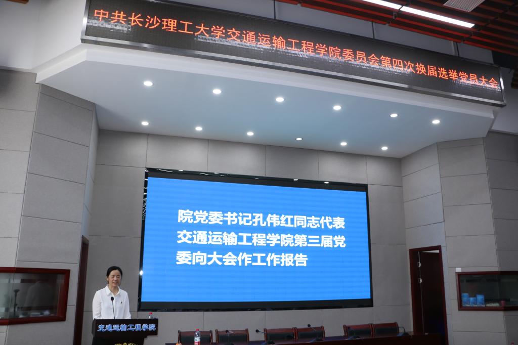 学院党委书记孔伟红代表上届交通运输工程学院党委作了题为《立足新百年,定位双一流,为决胜建成“百强大学”贡献新力量》的工作报告和《党费收缴使用情况报告》。党委工作报告详细回顾了在过去的四年中,学院党委在学校党委的正确领导下,坚持党建引领发展、党建凝聚力量,团结带领全院各党支部、广大党员和师生员工,全面贯彻党的教育方针,各项事业特别是高水平人才队伍、国家一流专业建设等方面取得了显著成效,人才培养质量不断提高,学科专业建设稳步推进,学生创新创业能力与就业质量不断提高,国际交流与国际视野不断拓展,师资水平逐步提高,学院综合实力和核心竞争力显著增强,师生的获得感幸福感不断提升,学院在高质量发展的道路上迈出了坚实步伐。