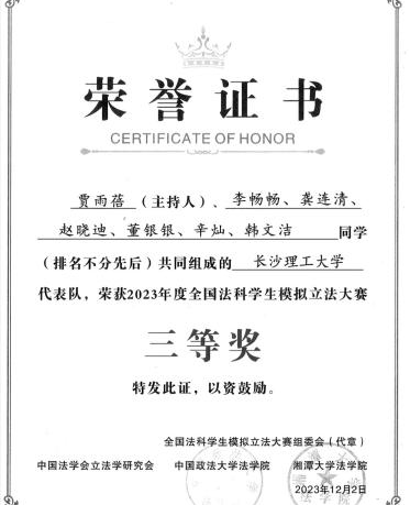 2023年度全国法科学生模拟立法大赛12月2日在中国政法大学落幕。伟德学子获全国二等奖1项、全国三等奖1项。