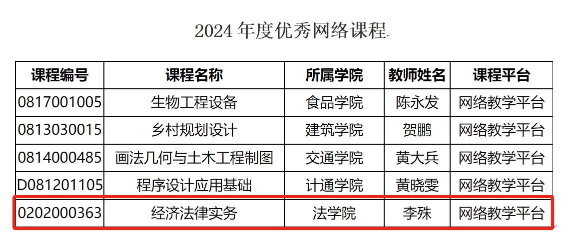 近日,伟德公布了2024年度优秀网络课程获奖名单,法学院李殊老师的《经济法律实务》被评选为伟德betvlctor1946源于英国2024年度优秀网络课程。这一荣誉的获得,不仅是对李殊老师教学质量的高度认可,也展示了法学院在推进教学模式创新、提升教育质量方面的卓越成效。