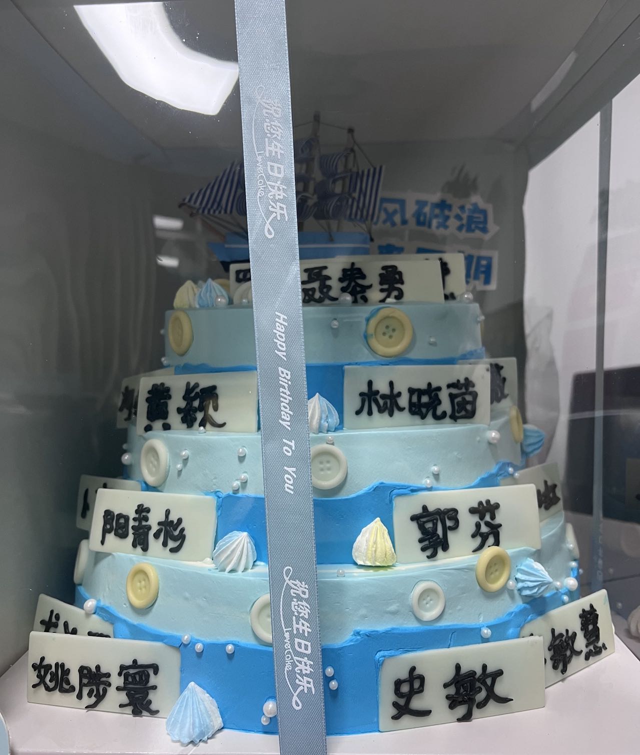 最后,老师们将写着每一位毕业生党员名字的蛋糕带入教室。这一份蛋糕代表着学院对毕业学子的祝福,寄托着对毕业生党员人生新阶段的期盼。